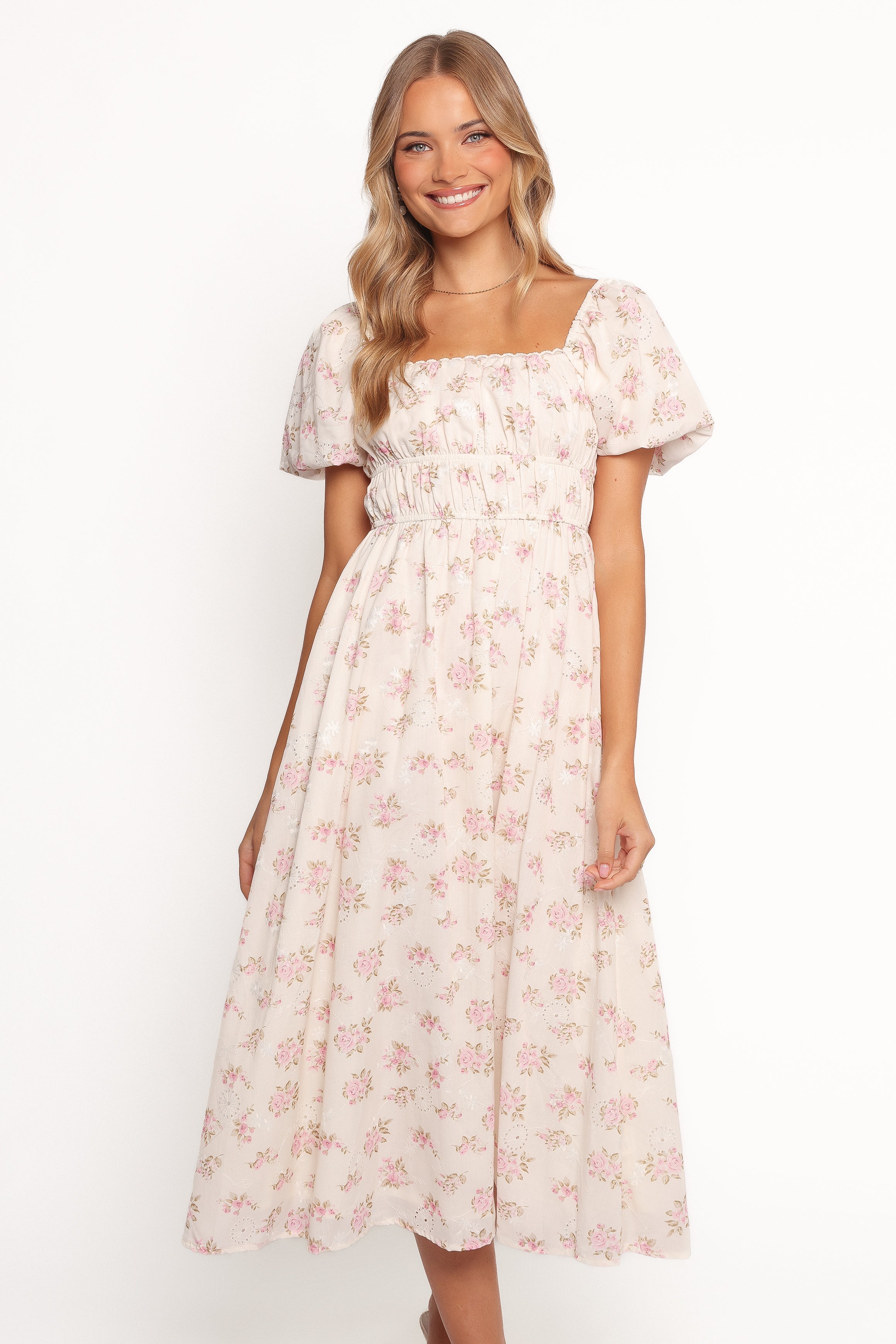 Step into effortless elegance with our Eowyn Maxi Dress in Ivory Pink. Designed with a soft. floral print and an airy A-line skirt. this dress is perfect for garden parties. weekend strolls. or relaxed celebrations.