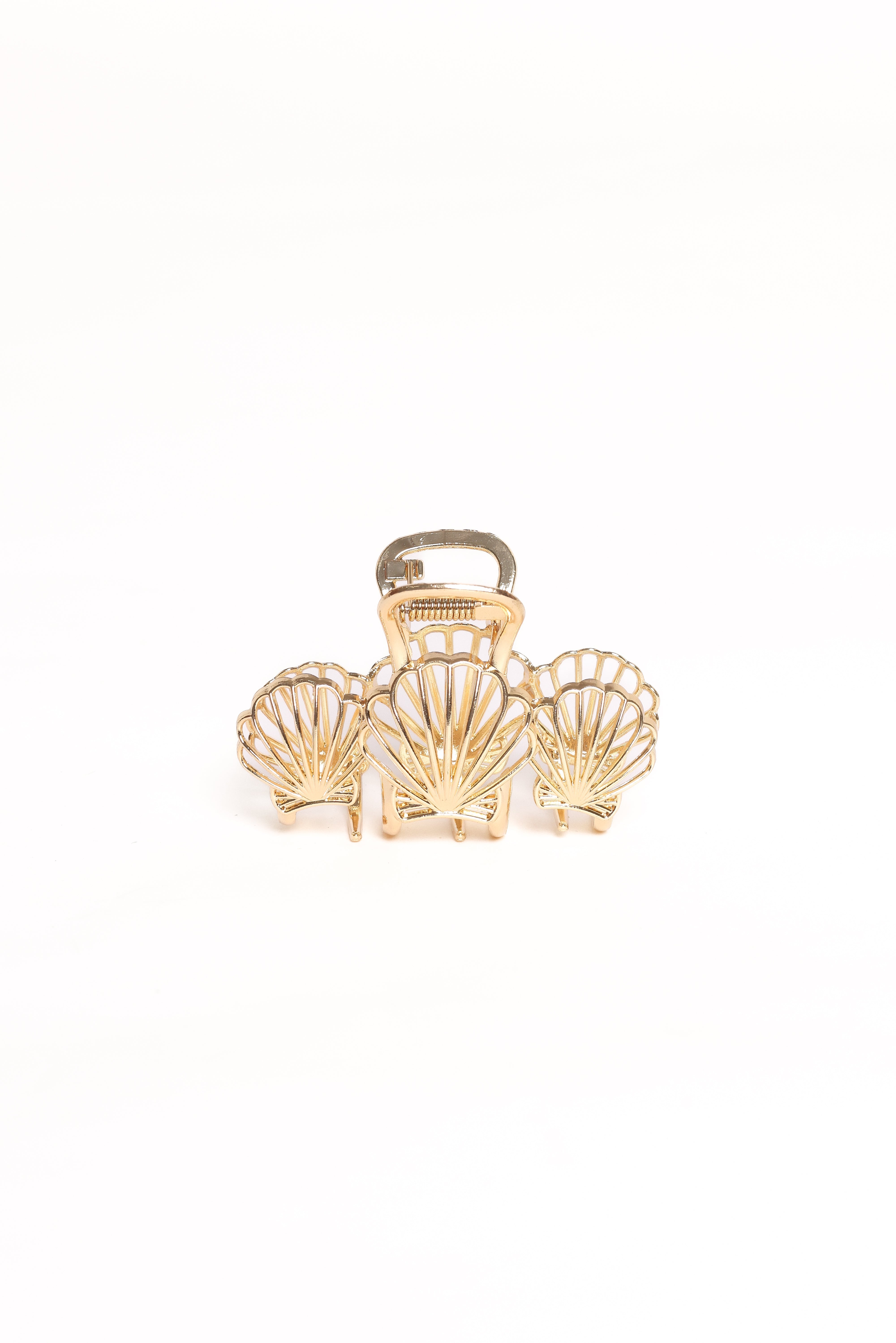 Elevate your everyday look with the Shelly Hair Clip in Gold a perfect blend of trendy design and effortless functionality. Inspired by the elegance of seashells. this claw clip features a chic gold hardware finish that adds a touch of sophistication to any hairstyle.
